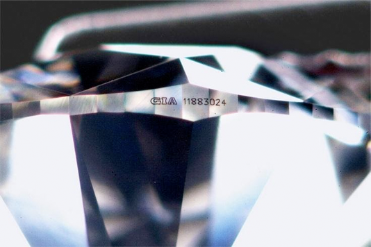 Para incrementar el nivel de seguridad, todos los diamantes que se entregan con certificado GIA tienen su número de identidad único inscrito de forma laser dentro del diamante, en concreto en la parte que se conoce como la “faja” del diamante y este puede ser visible con una lupa especial de joyería.