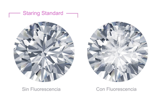 Los diamantes con una calidad de color alta sin fluorescencia tienen un mayor valor. Así, los diamantes con fluorescencia fuerte o excesiva pueden verse como turbios cuando son observados a la luz natural.